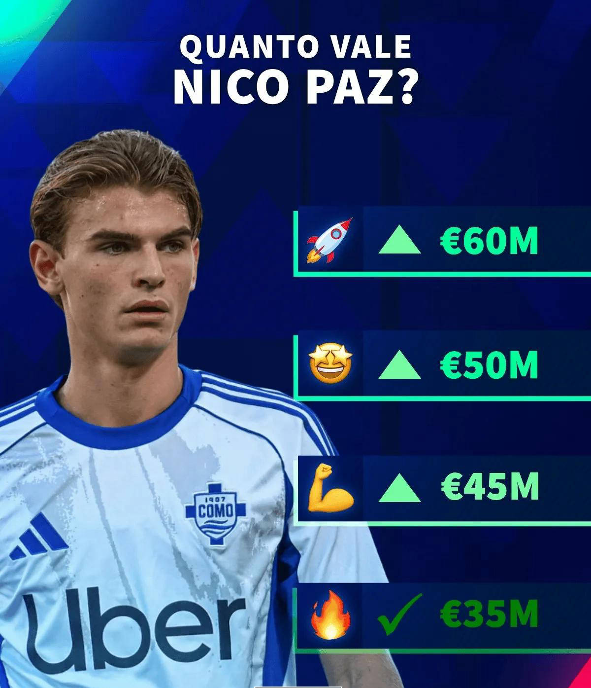 尼科-帕斯于2004年9月8日出生,曾效力于皇马青年队等多个级别。2024年以600万欧元加盟科莫后,他交出了35场6球8助攻的出色数据。尽管受到国米、热刺等多支豪门球队的关注,其中热刺还开出了7000万欧元的天价报价,但帕斯选择留在科莫效力。